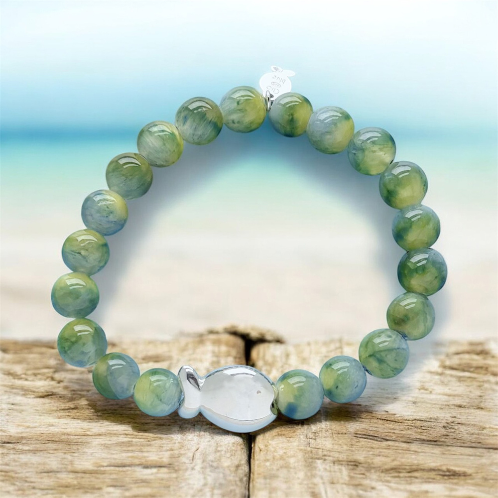 應用黃綠藍色色系的翡翠搭配純銀小魚,展現大自然的色澤.