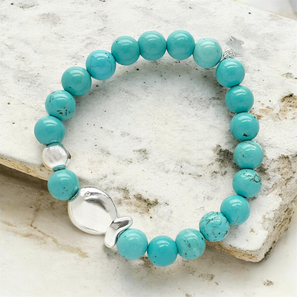 藍灰色色系的運用搭配純銀小魚,展現大自然的色澤.