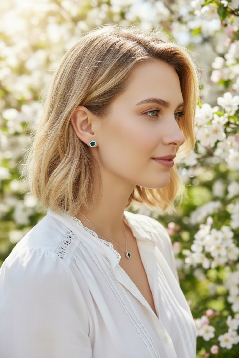 【CLIO BLUE】孔雀石幸運草耳環