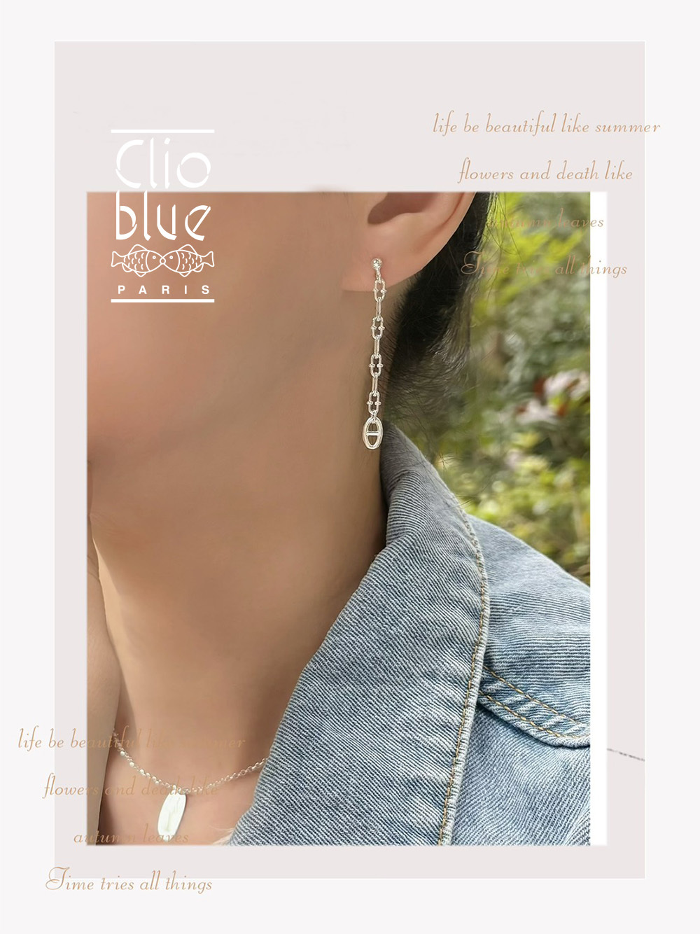 花式造型的鏈條尾端懸掛一個海字母,既有浪漫氛圍又有時尚感,好搭又修長臉型