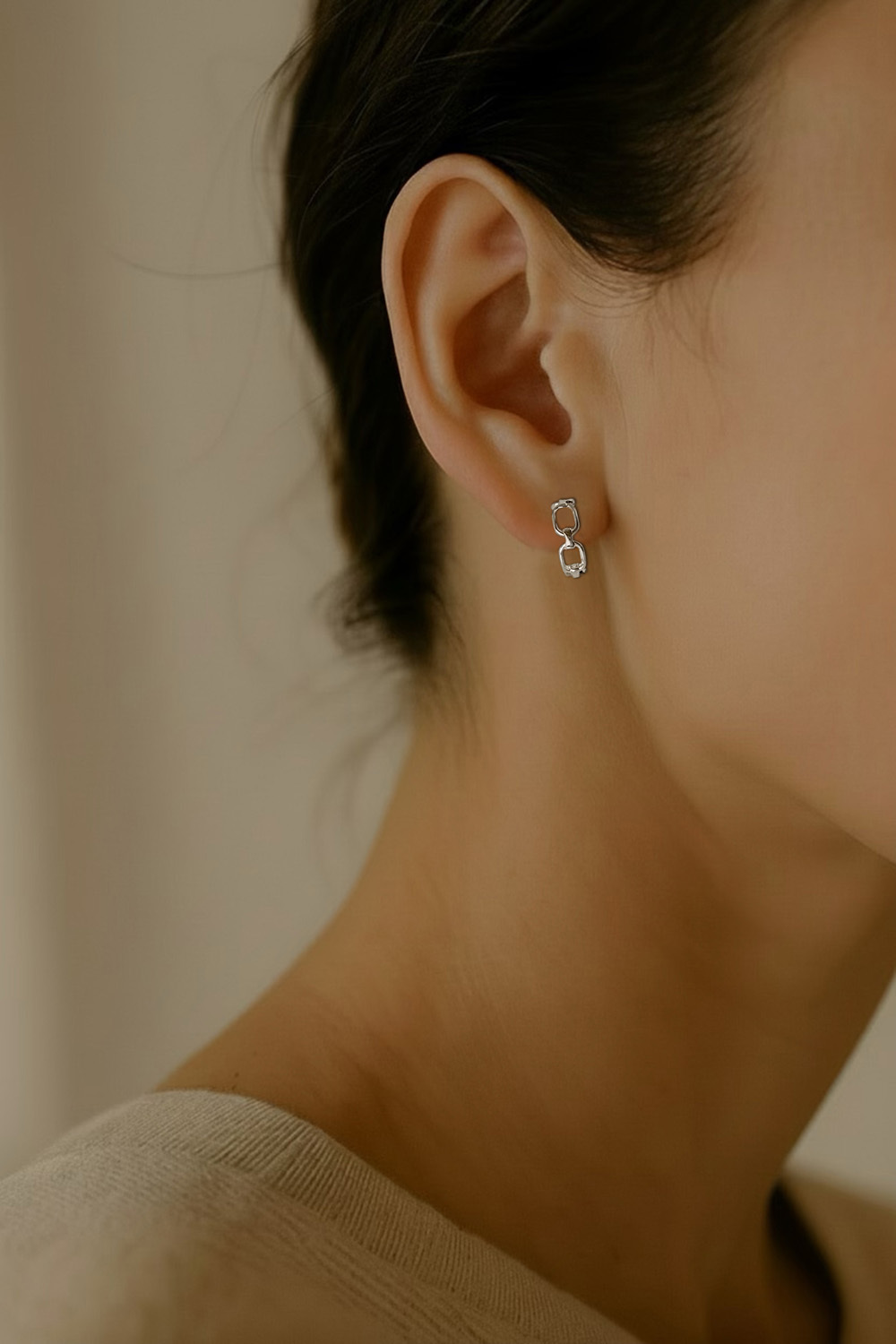 像馬鞍的長方形圈圈的鏈條款,讓小耳環更有變化與特色