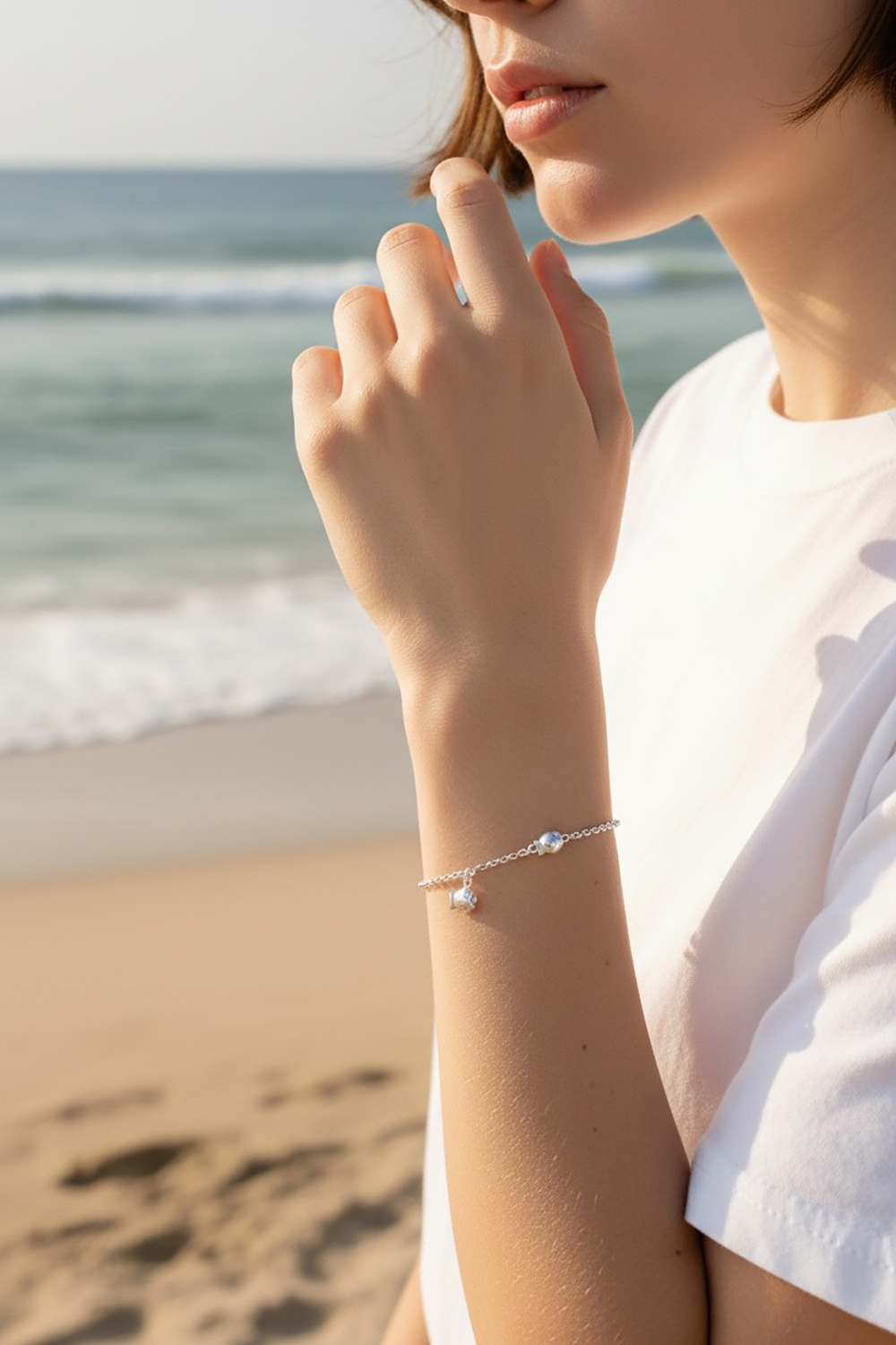 一隻小胖魚再掛一隻小胖魚,福氣可愛到爆表,圓滾滾的身軀戴在手上更顯白亮.