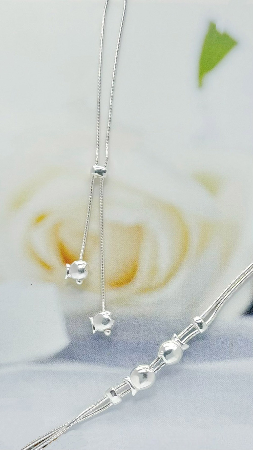 迷你雙Y字鍊並尾端分別掛上2隻可愛胖小魚