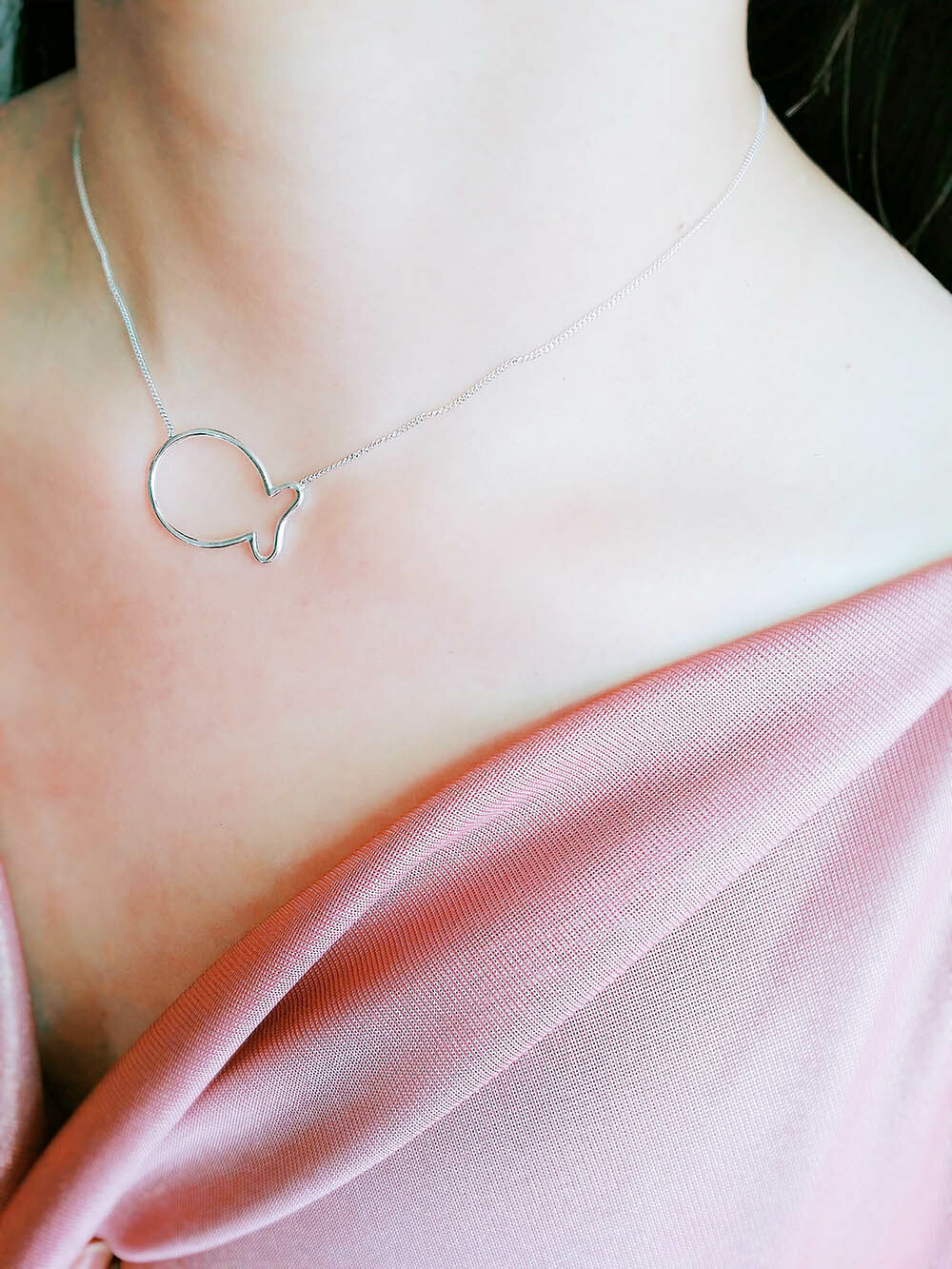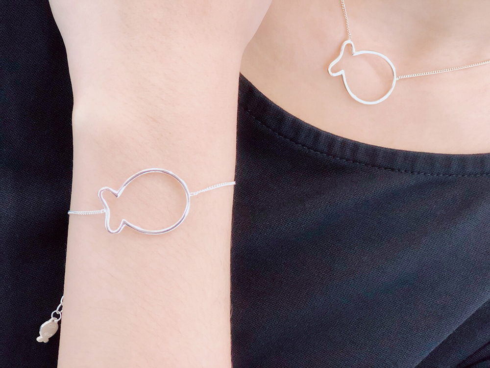 用大小適中的銀線,勾勒出魚的形狀,這款稱為影子魚的手鍊跳脫了傳統的設計.是另一種小魚選擇.