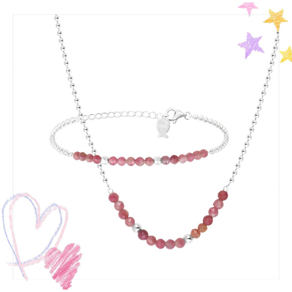 蜂巢狀時尚切割紋的覆盆子石英,搭配明亮小銀珠子,清新的俏皮風.