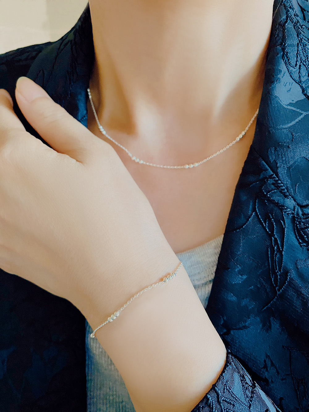 經典的純銀珍珠款,將3顆銀珠一串亮點更集中.