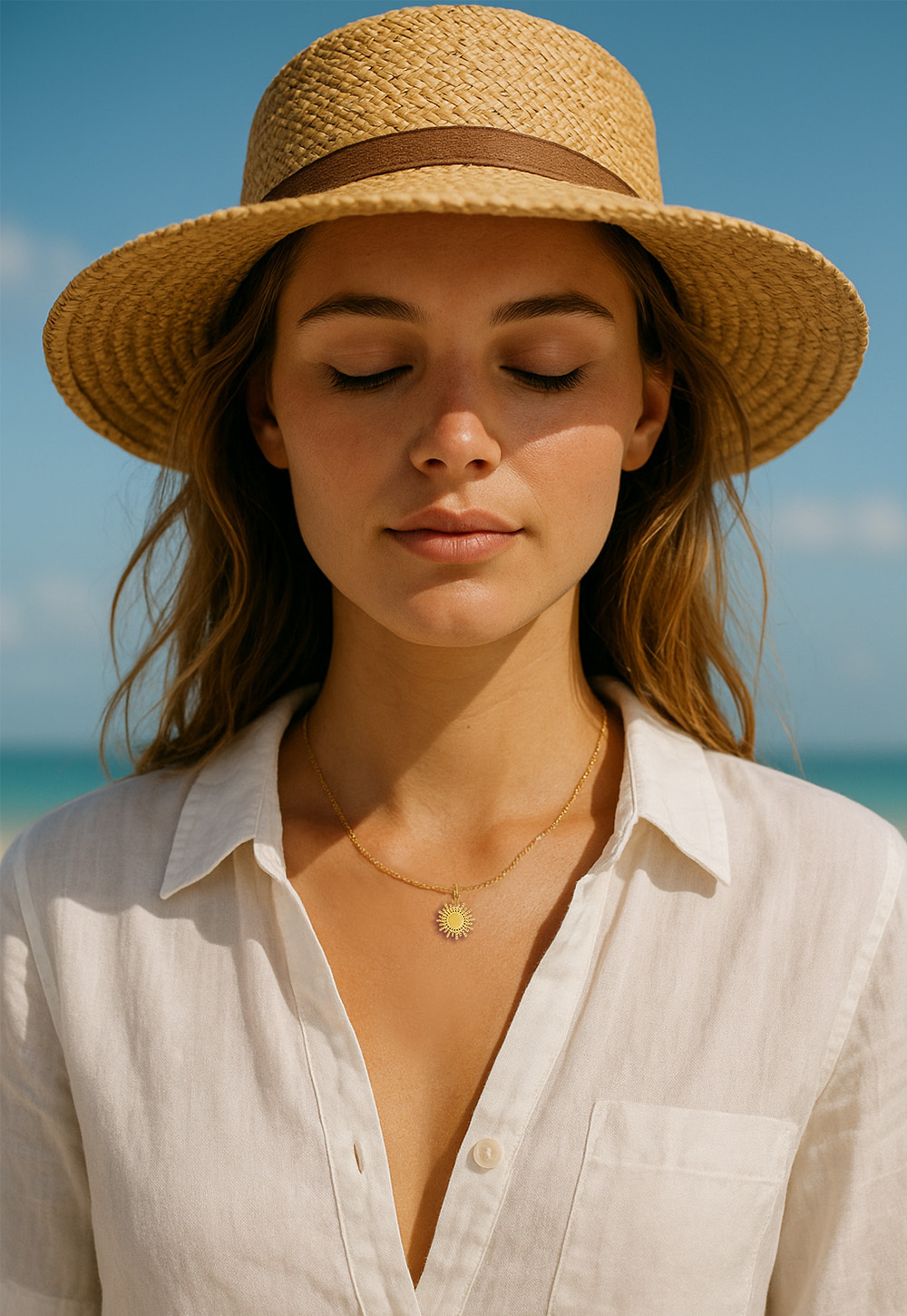 精緻刻紋的太陽,線條長短設計並往外擴散光芒,簡約時尚風格.