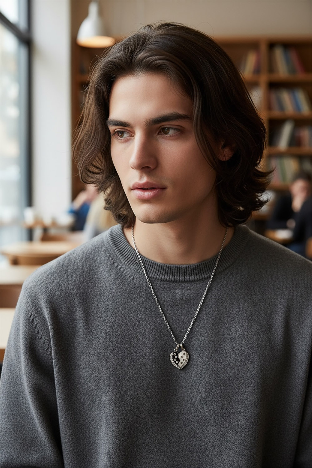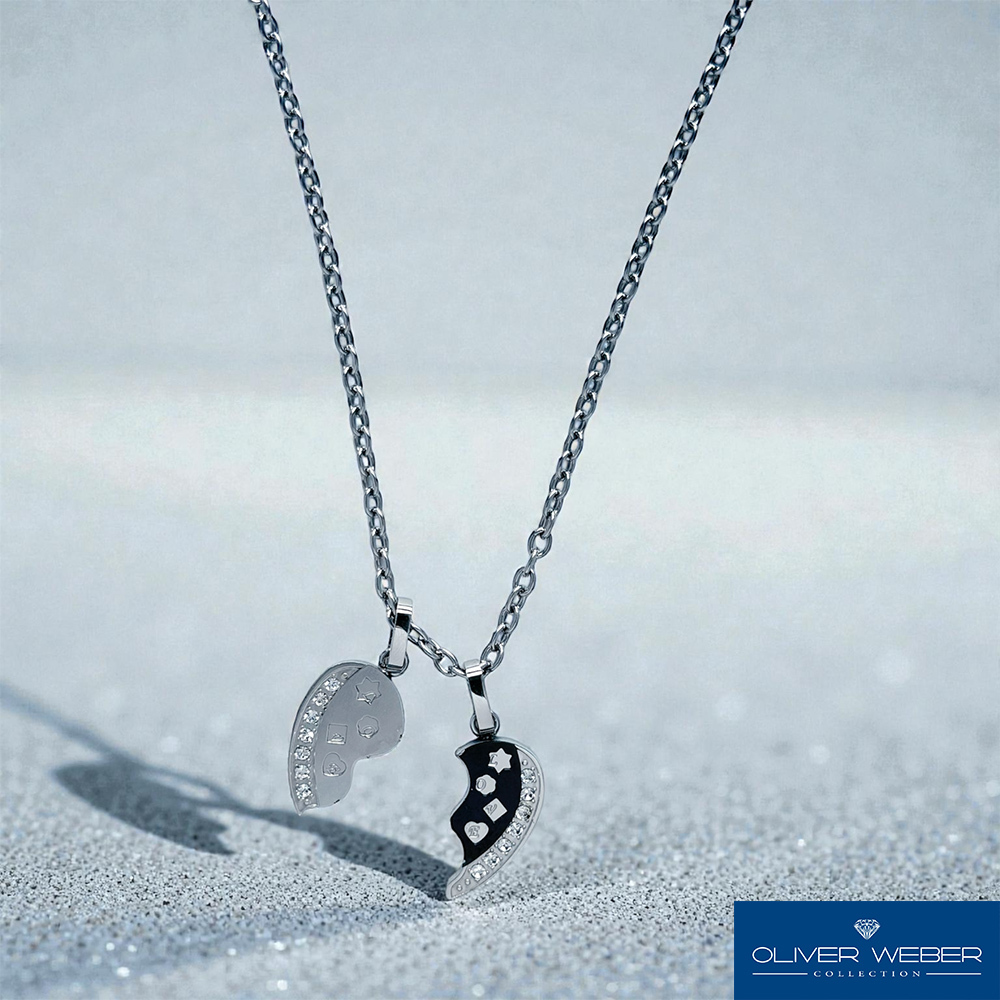 獨特的平面切割愛心, 可合併配戴也可單獨配戴,多變的造型,搭配白水晶與黑色冷琺瑯,個性有型.