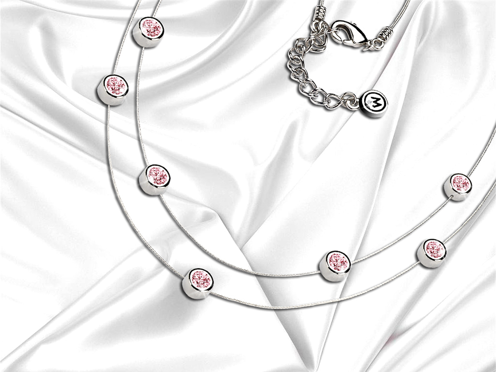 這款採鋼材設計製作的雙圈鍊,再鑲以9顆包鑲式水晶,完美的分佈在頸間,迷人的發出淡淡光芒,看起來年輕又時尚.