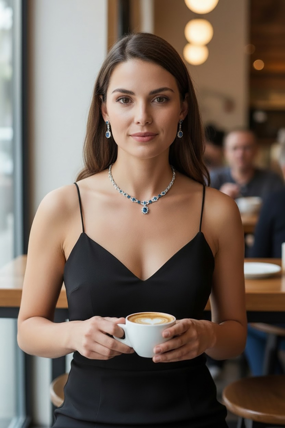 獨特的色彩和造型成為了公主風格的代表之一。海洋藍色的水晶給人一種寧靜而又神秘的感覺,彷彿蘊藏著無盡的故事。水晶的橢圓形設計則增添了一份柔和和女性化,它輕盈地懸掛在鳶尾花造型的鍊條上。