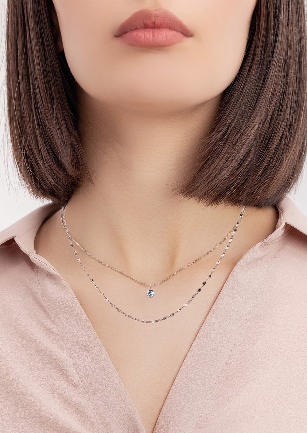 經典圈圈鍊搭配水波紋鍊,不同的長度增加層次感.短鍊搭配鋯石,低調的迷人感.