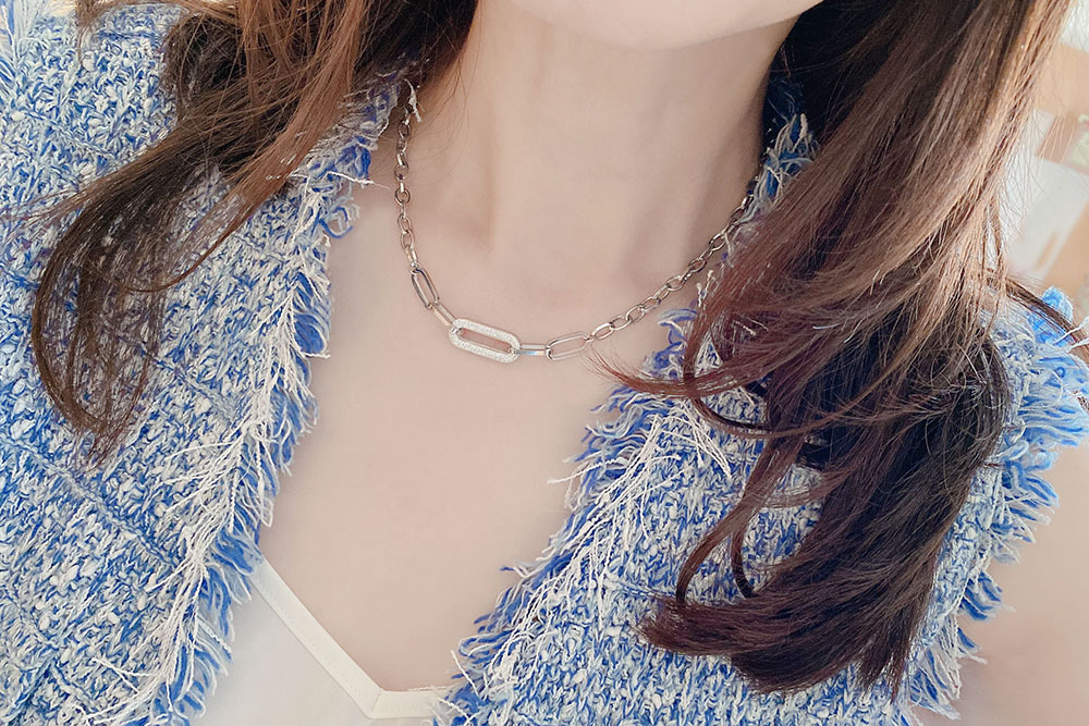 長圈型的設計很有個人特殊風格,這款項鍊在正中心的長圈鑲滿水晶.增加明亮感.