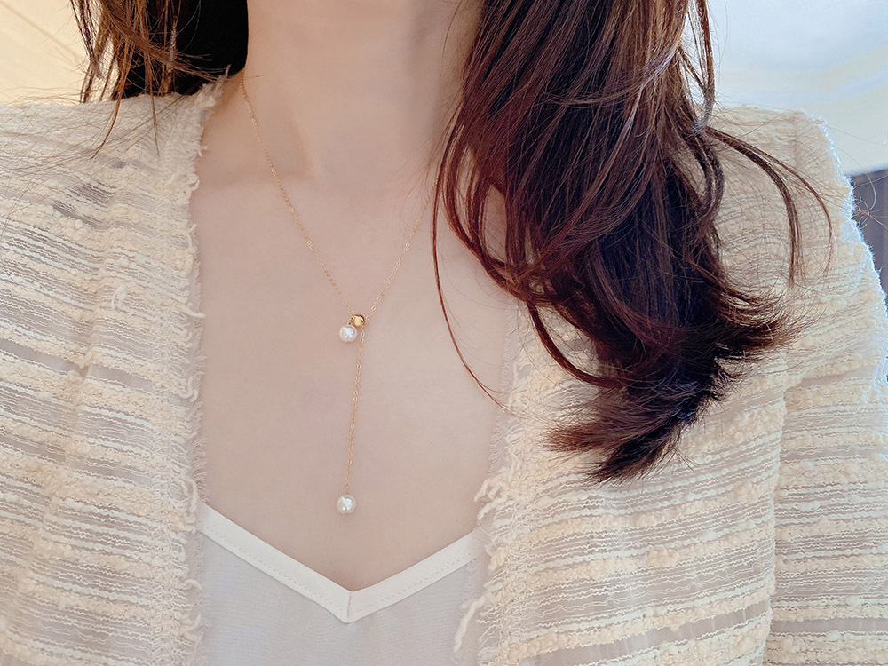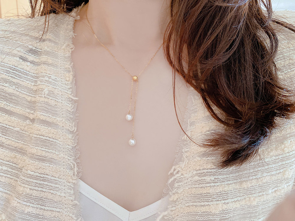 施華洛世奇水晶珍珠搭配可調整長度的鍊條.讓珍珠短自調.典雅又時尚.