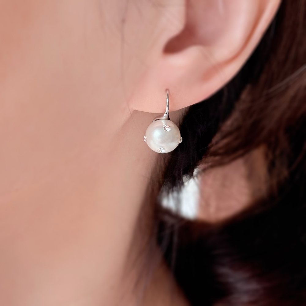 施華洛世奇的1公分水晶珍珠,巧思的鑲水晶在珍珠上,增加時尚明亮感.
