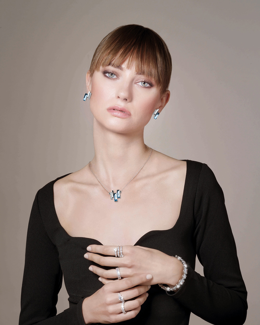 冰藍長方水晶,以不規則方式排列增加時尚感.細長方的設計更有修長感.