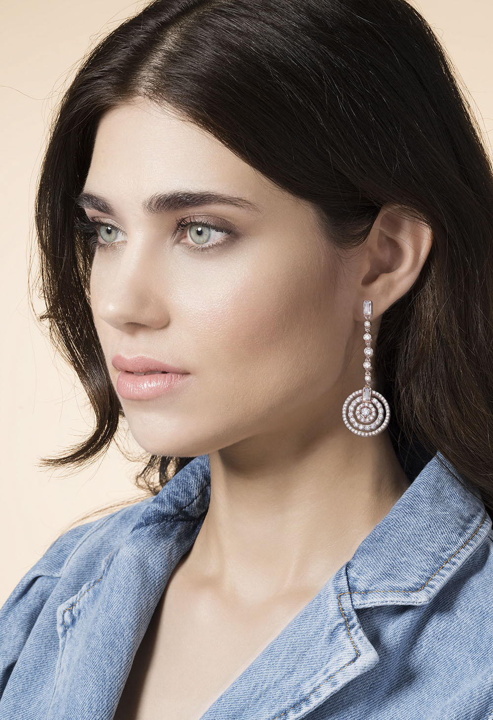精緻輕珠寶的工法,不同形狀尺寸的鋯石排列.頂級的切割搭配淡雅的玫金.