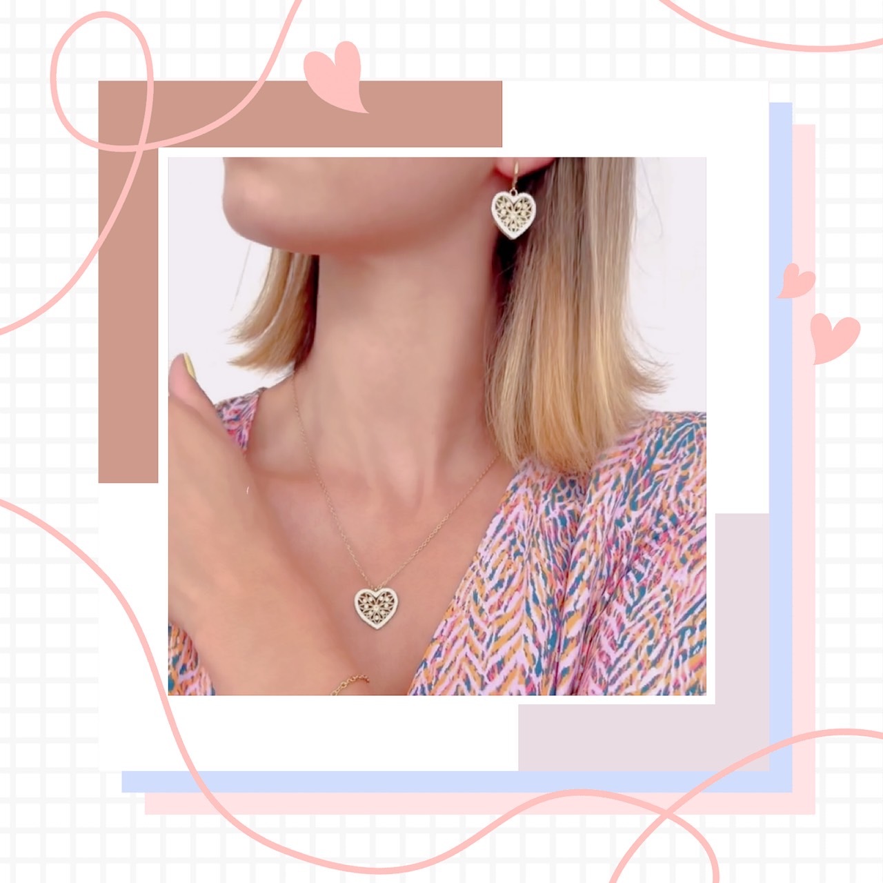 方正的愛心內部搭配簍空花朵,很有心古典的復古感,再巧思的將花朵以飛舞的線條帶出.