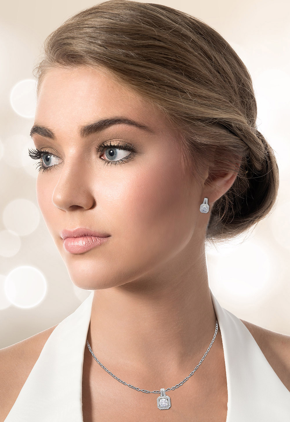 俐落個性的方型,中間再鑲以0.5克拉尺寸的鋯石,裸視可見的8心8劍切割.盡顯靈動風雅.