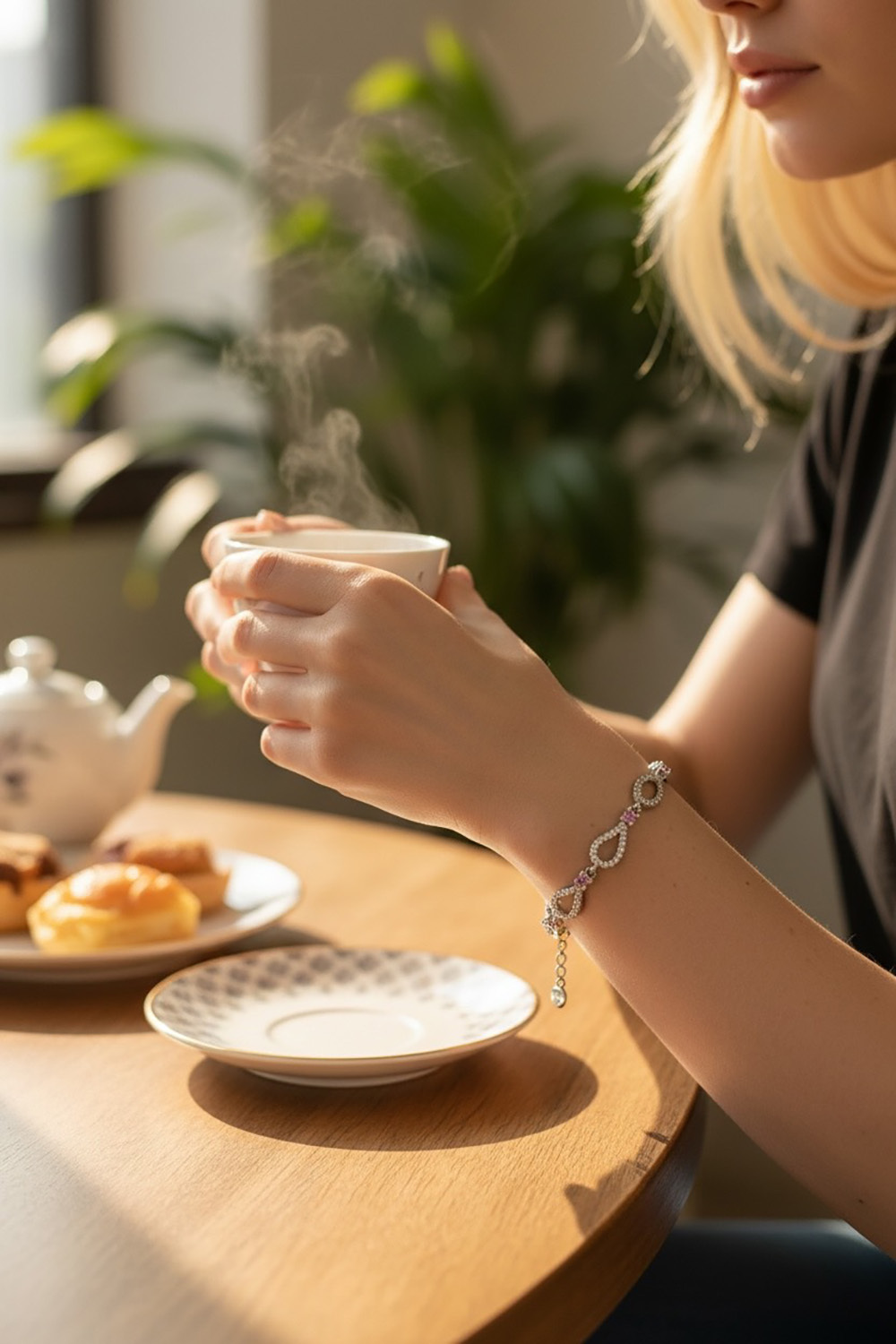 復古優雅的水滴經典造型,這款浪漫主義風格的手鍊,搭配浪漫透明粉色的粉水晶,更顯氣質與提亮膚色.