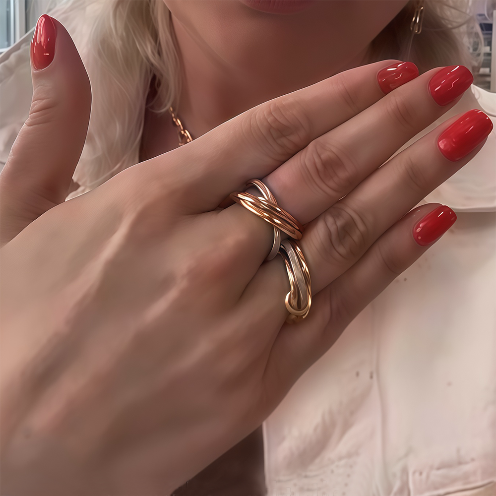 採用2種金屬色,黃金、白金設計的戒指.象徵時間的流動