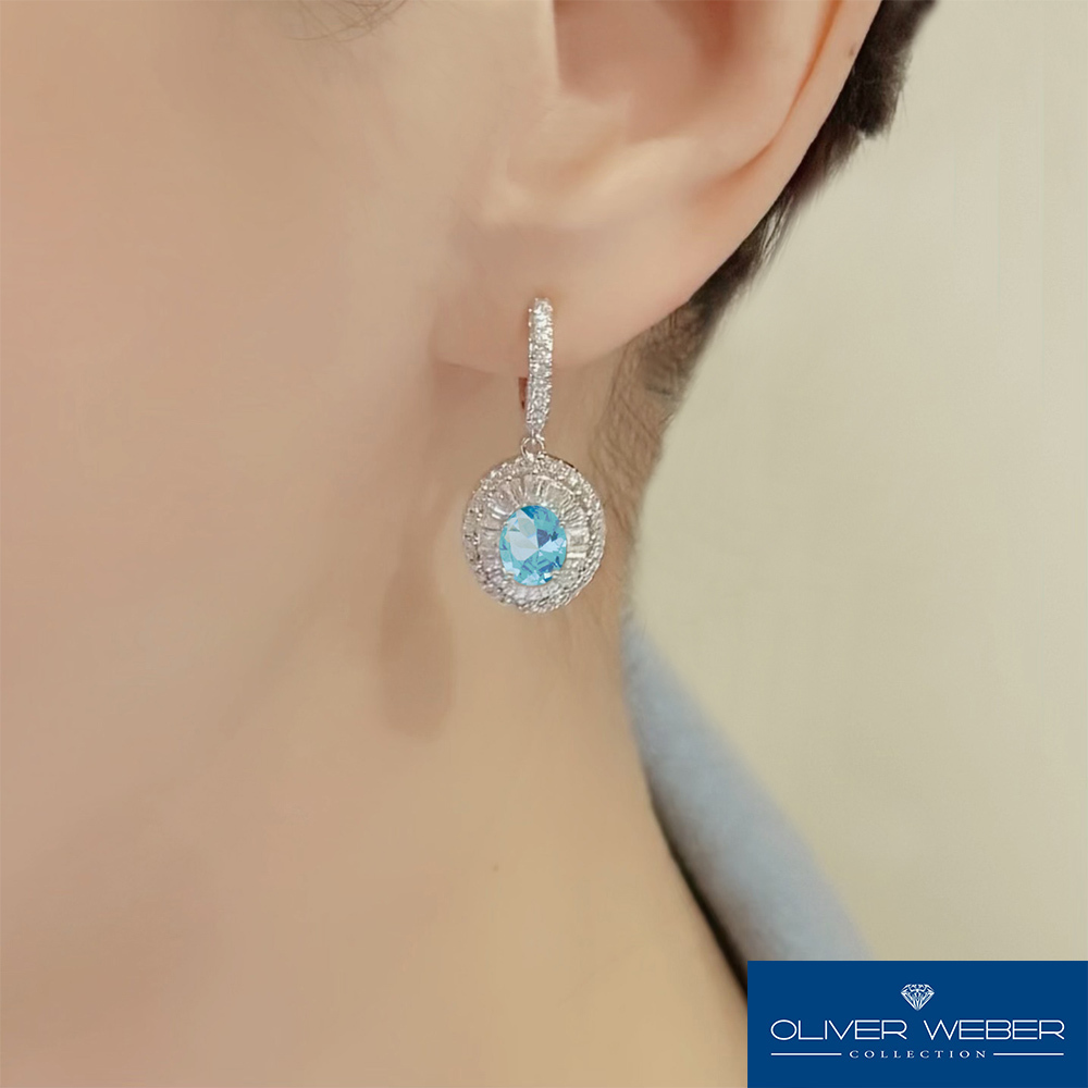 採用高級珠寶的工法,使鋯石平整有序的爪鑲工法,外圈採用傳統橢圓式爪鑲圍繞,中圈再鑲16顆T型鋯石,呈現放射狀燦爛光芒,再鑲以橢圓型海藍寶色鋯石,完美呈現維多利亞時代優雅傳承的造型.