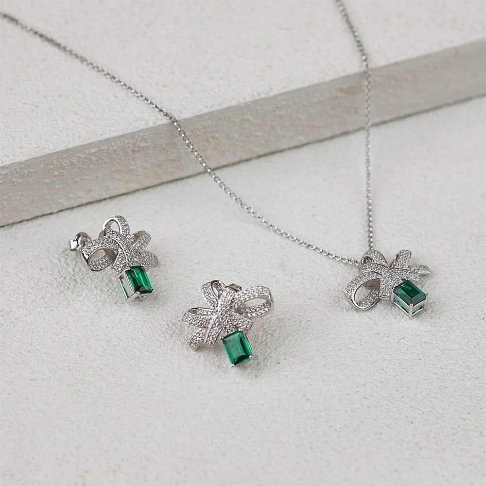 採用高級珠寶的工法,使鋯石平整有序的爪鑲工法,再鑲以祖母綠切割長型綠鋯石,完美呈現優雅傳承的造型.